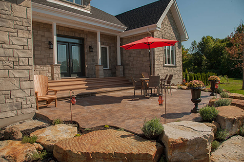 Le béton estampé est un type de béton qui est modifié à la surface pour imiter des matériaux comme la pierre des champs, le pavé uni ou le plancher de bois franc. Comme entrepreneur en béton, nous pouvons adapter le fini de votre surface selon vos goûts! C’est pourquoi nous offrons une grande gamme de motifs et textures.